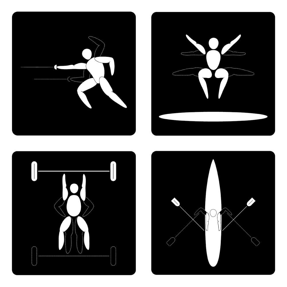 I thought to myself, “how cool would it be to have two pictograms in one by showing the body at rest and the body at motion. From what I can tell, it hadn’t ever been done in an olympic pictogram.